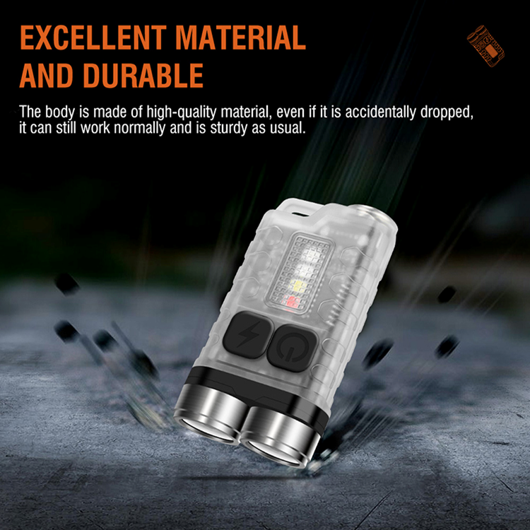 The Latest Multi-Functional Keychain Flashlight available now. The new Fluorescent Model V3 features lighting modes. 2x XPG2 LEDS that boasts 900 lumens in turbo mode. Color temperature 6500K with a 100 meter range. Features a built-in battery capacity of 500mAh which includes a USB-C Charging Cable. Sleek, durable and a comfortable feel, the perfect multi use light for on-the-go situations. Solid Feel All Around !!! There's also a powerful magnet added to the tail to help in difficult hands free situations.