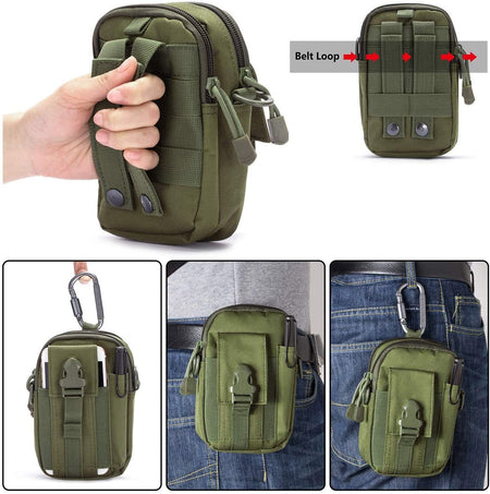 - Versatile pouch designed as a small tactical EDC pouch, MOLLE waist pouch, utility belt pouch, tactical phone pouch, gadget pouch and military pouch. Multi-purpose pockets help you take and classify all your items such as mobile phone, iPhone, Samsung Galaxy, digital camera, keys, wallets, pens, flashlight, compass and other small tools, perfect for EDC flashlights and batteries.