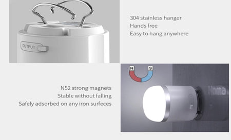 Release your hands - This camping light is very compact and portable. It can be held in hand, hanging in tent, stand on table and adsorbed on iron surfaces.