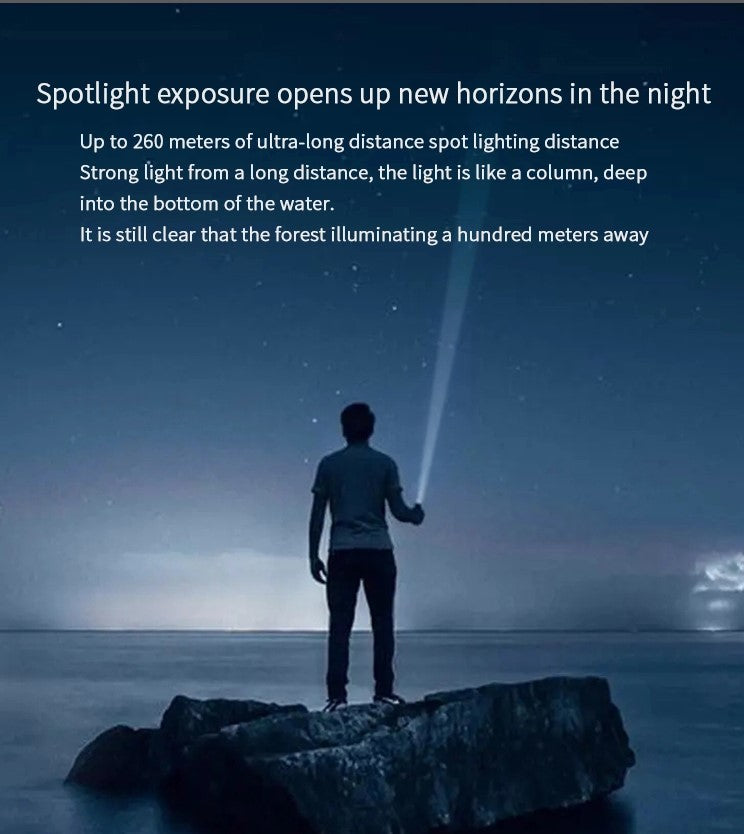 Multi-Function Portable Light - It can be used as a camping light with 5 levels, as a spotlight more than 260m lighting distances and as a 7200mAh battery bank for mobile phones.