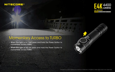 | Turbo | 4,400 Lumens | 30 min |