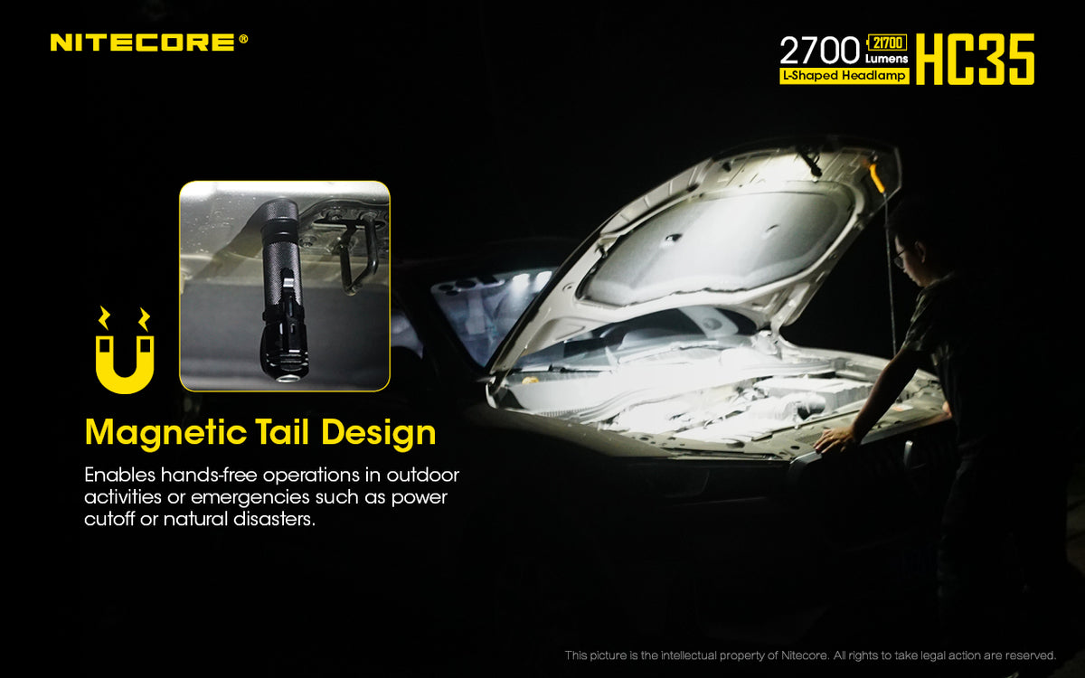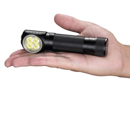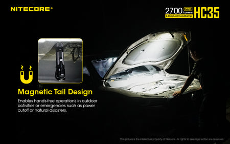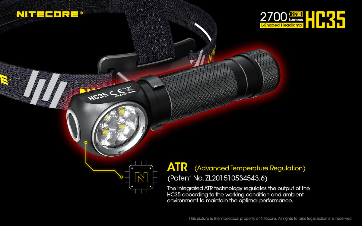 The NITECORE HC35 L-shaped headlamp is the first next generation headlamp to feature a high performance 21700 battery. This powerful battery unleashes the quad LEDs max brightness of 2700 lumens turbo with over 146 yards of beam throw. The quick detach headlamp bracket allows you to easily rotate the flashlight on the headband to illuminate where you need it.