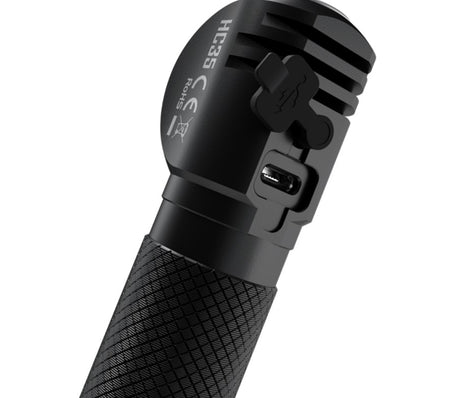 The NITECORE HC35 comes with a high performance, 4000mAh 21700 li-ion (Battery Included) that provides up to 1200 hours of uninterrupted operation. It can also run on any >8 high discharge 18650 battery, a pair of CR123, or RCR123 batteries when you use included battery adapter sleeve. With a built-in micro USB charging port, and LED power indicator, the HC35 will not leave you in the dark when paired with a rechargeable battery.