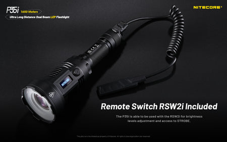 Powered by a 5,000mAh high capacity Li-ion battery, the P35i is able to be used with the remote switch RSW2i for brightness levels adjustment and access to STROBE. With the integrated ATR Technology, it is constructed from aero grade aluminum alloy with cooling fins on the head to offer excellent cooling performance.