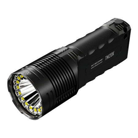 The NITECORE TM20K is the brightest of the Tiny Monster series, yet still remains a compact handheld size thanks to new technology and improved design. This high performance flashlight is a true factotum of illumination with 19 LEDs for a powerful 20,000 lumen max that is astonishing output and cut through 317 yards of the darkness. The TM20K can be used for anything from outdoor activities, industrial uses, self-preservation through active threat mitigation, search and rescue.