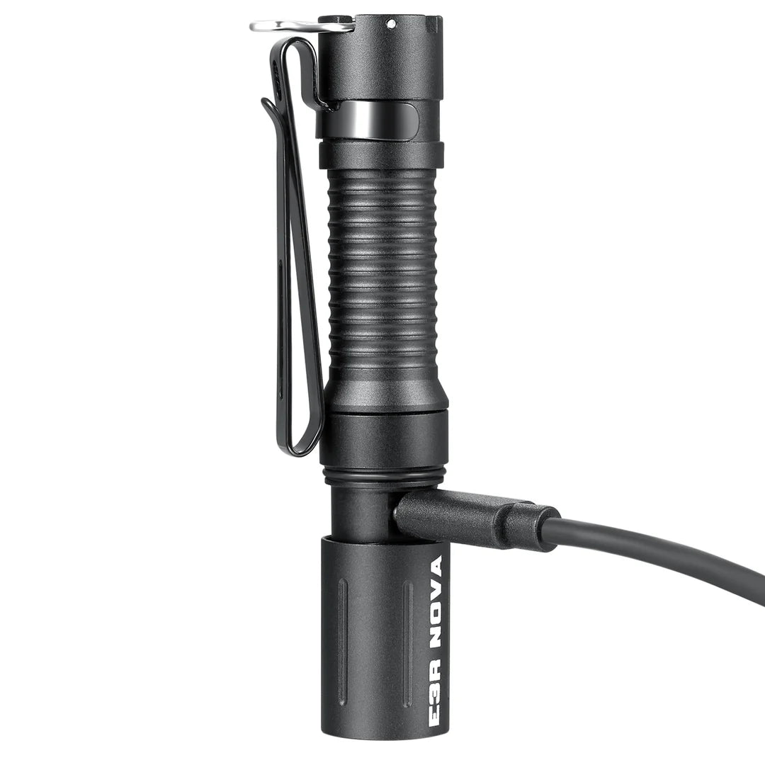 The Powertac E3R Nova is a rechargeable LED flashlight that emits an extremely bright 820 lumens despite fitting easily in your pocket. The E3R Nova is equipped with a super bright white LED and can emit a powerful beam up to 86 meters in length for impressive visibility wherever you are. With an efficient design that doesn’t compromise power for size, the new E3R Nova flashlight delivers the performance you need with a long-lasting runtimes so you always have a light when you need one.