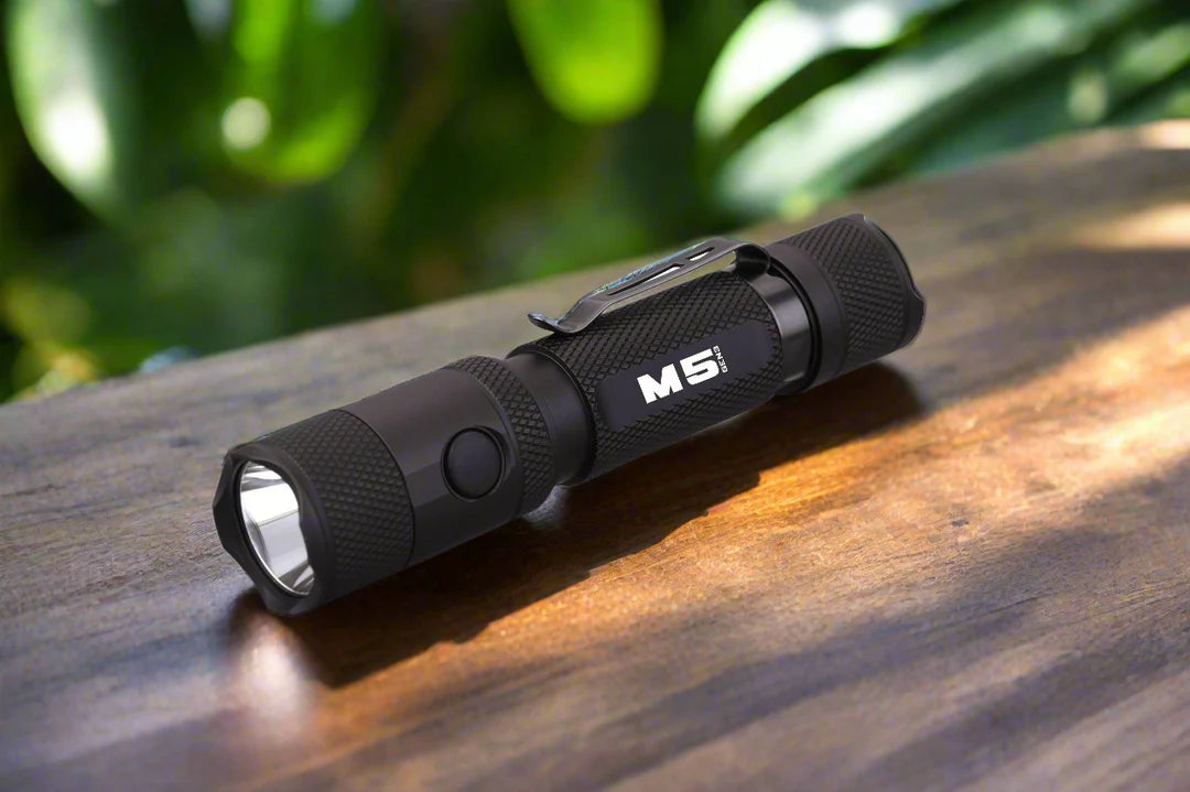The Powertac M5 Gen3 is a high-power EDC flashlight designed for versatility and performance. Delivering up to 2,030 lumens, it’s perfect for lighting up dark spaces or navigating outdoor adventures. This compact yet rugged flashlight features multiple brightness levels, a strobe mode, and a durable aluminum body built to withstand everyday use. It also includes a rechargeable battery, a pocket clip for convenient carry, and a tactical tail switch for quick, intuitive operation. Whether you’re camping, hiking, or working around the house, the M5 Gen3 is a reliable and essential tool for any situation.