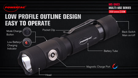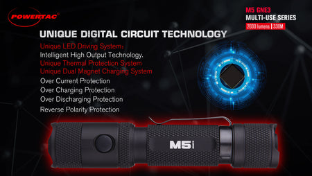 PowerTac M5-GEN3 Tactical Flashlight 2030 Lumens