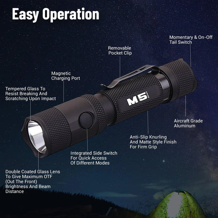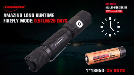 ●【Lifetime Warranty】-PowerTac offers Lifetime Product Replacement and maintenance Warranty for the M5-G3 LED Flashlight. Fast and easy to reach Customer Service to solve your problems within 24 hours.