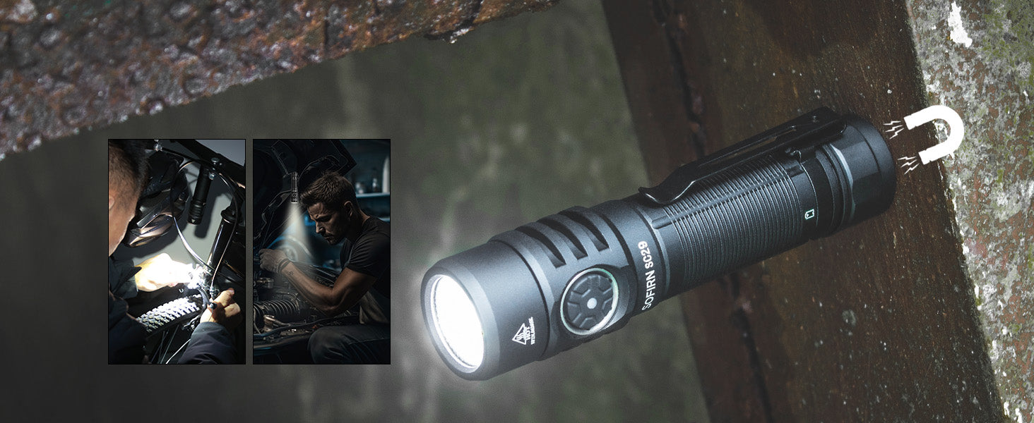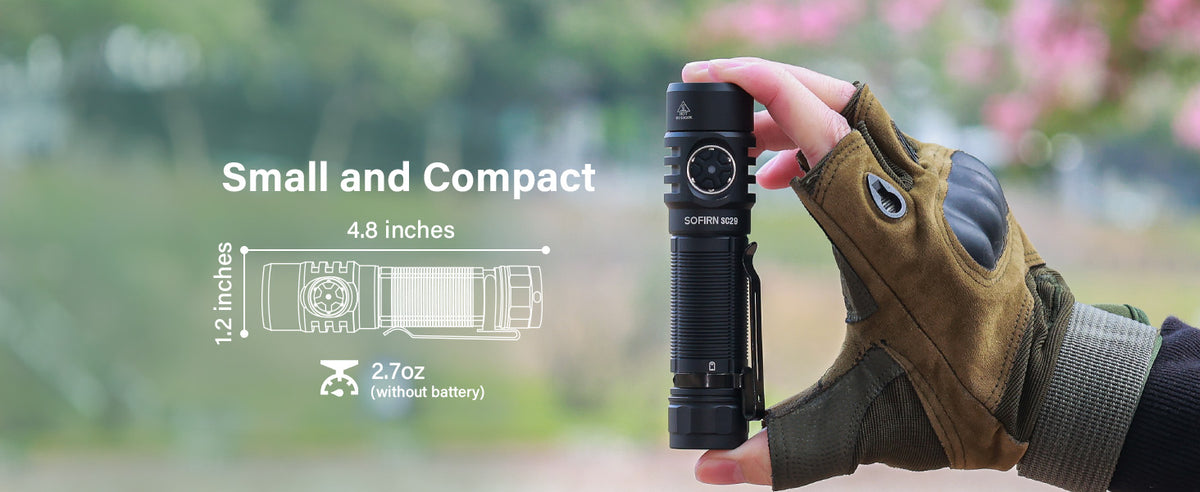 The SC29 is equipped with a unique concave switch, which fits your thumb perfectly, making it comfortable to click. Additionally, the unique concave design effectively reduces the chance of accidental activation when carried in your pocket or backpack.