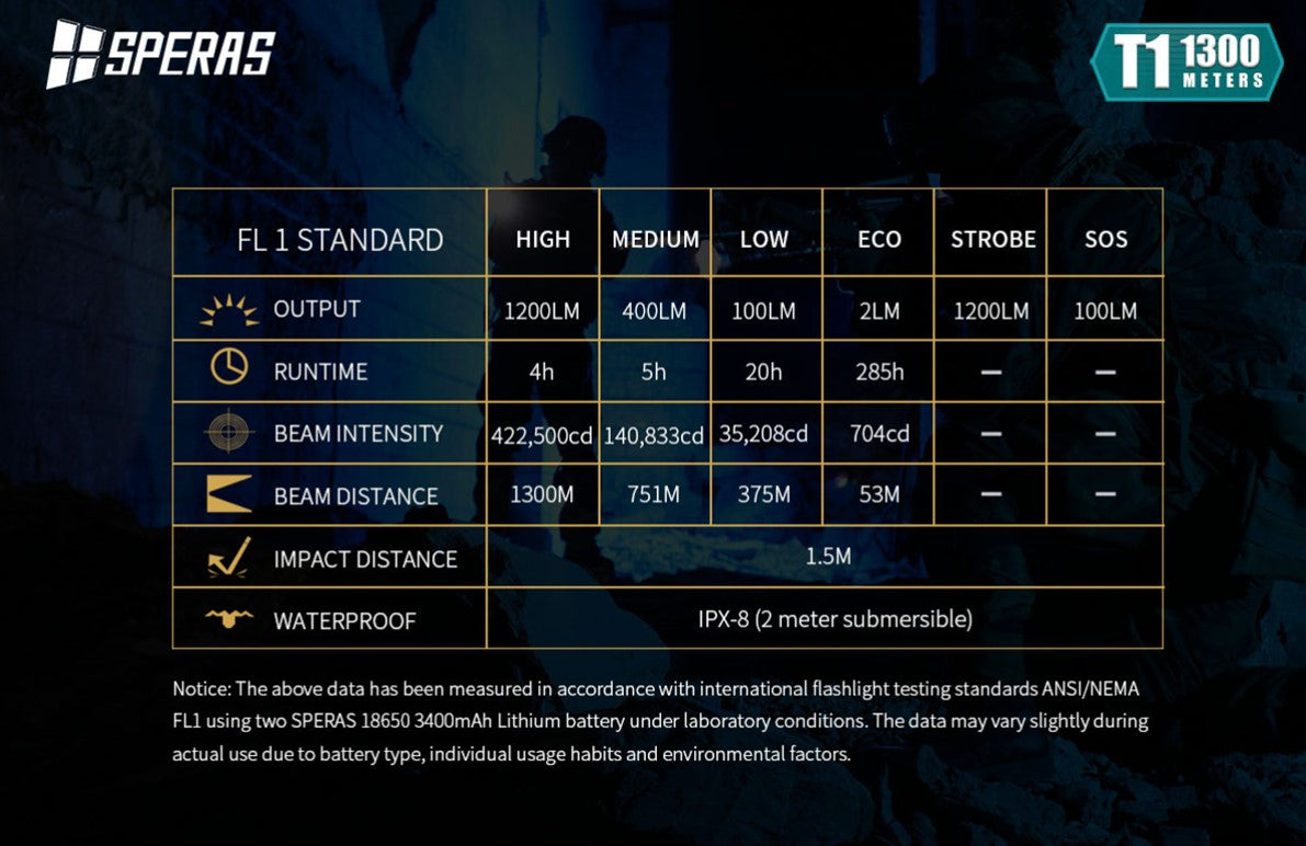Speras T1 Long Range Flashlight 1200 Lumens