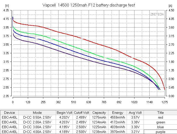 Vapcell 14500 F12 1250mAh 3A Rechargeable Flat Top Battery