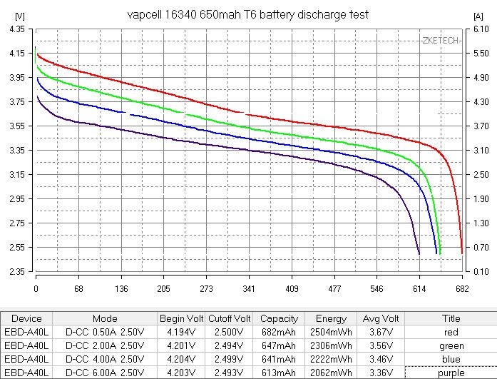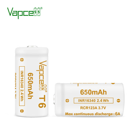 Vapcell 16340 T6 650mah 6A Rechargeable Button Top INR Battery