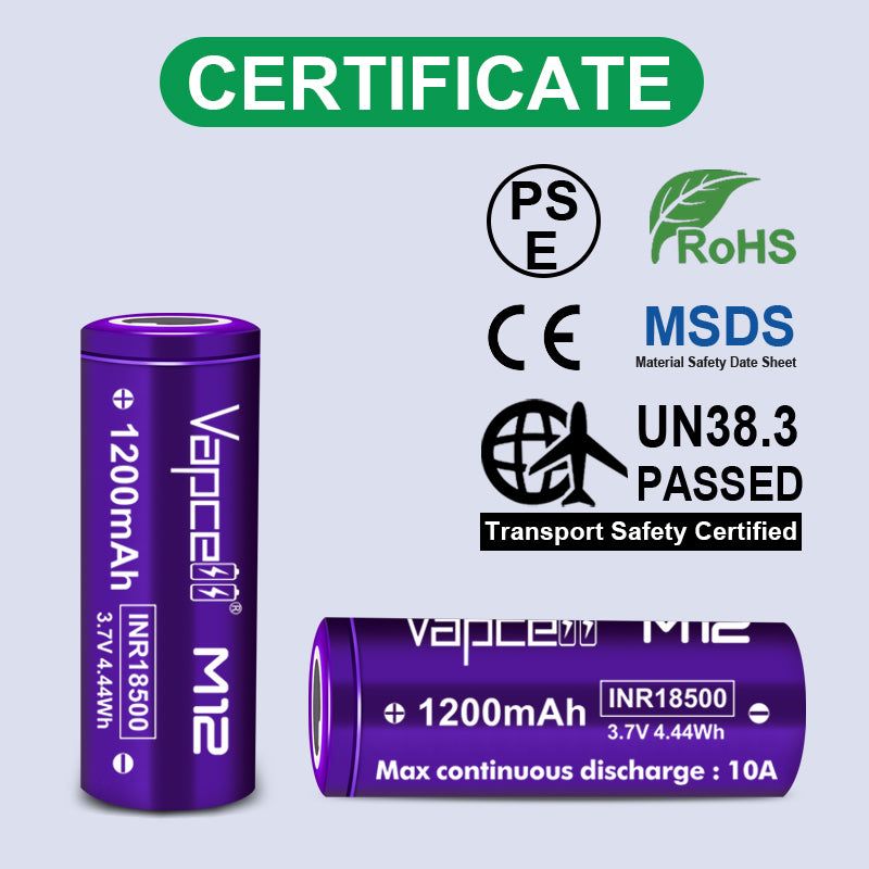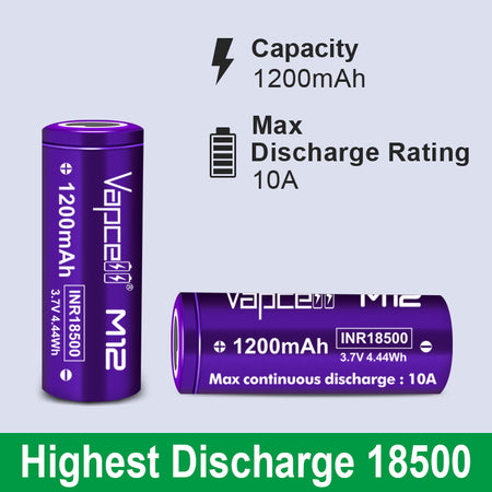 Vapcell 18500 M12 1200mah 10A Rechargeable Flat Top Battery