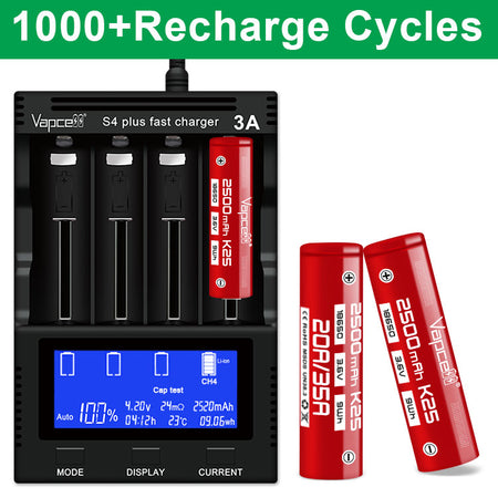 The Vapcell K25 18650 is a high-performance rechargeable lithium-ion battery, ideal for demanding applications such as vaping devices, flashlights, and other high-drain electronics. With a capacity of 2500mAh and a continuous discharge current of 20A (up to 35A pulse), it offers a reliable and efficient power source for your devices.