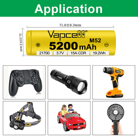 Vapcell M52 21700 5200 mAh High-Capacity Li-Ion Rechargeable Battery
