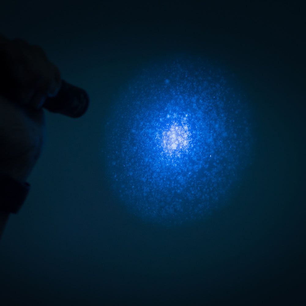 The visible wavelength range to human eye is 400-700 nm, while the dominant wavelength of the M2 flashlight is 365 nm with less visible light, so the M2 is not "bright" in eyes and it's not designed for use of illumination. From which it proves that it's pure 365 nm wavelength with a better performance than the ultraviolet light of other wavelengths (380-400 nm).