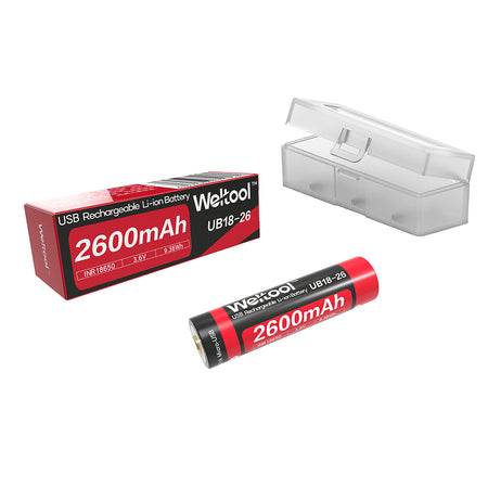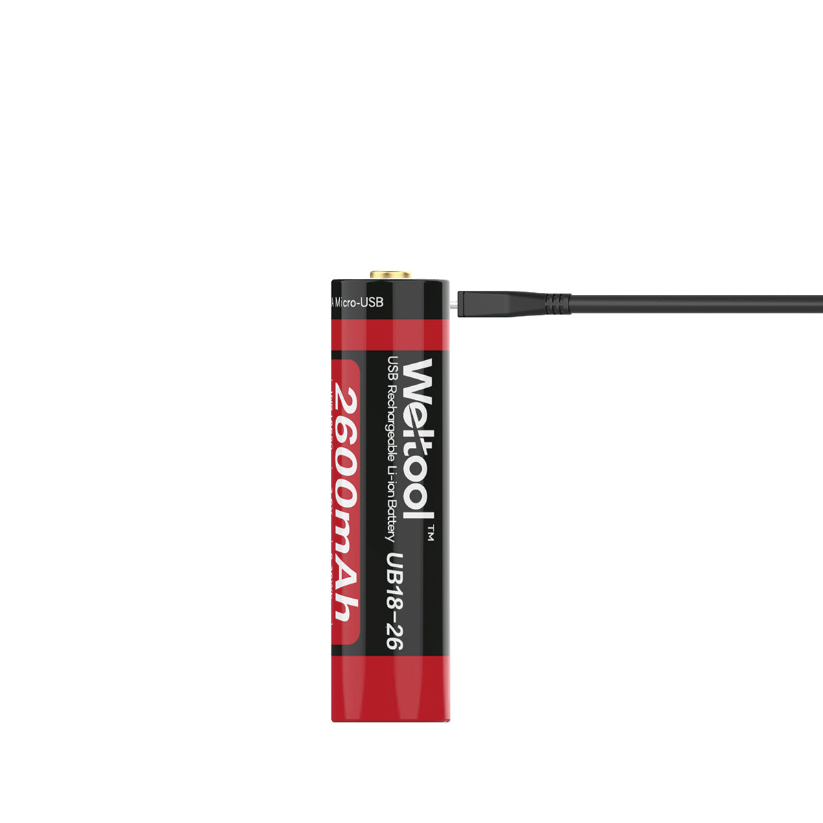 Weltool UB18-26 (18650) 2600mAh USB Rechargeable Li-ion Battery Button Top