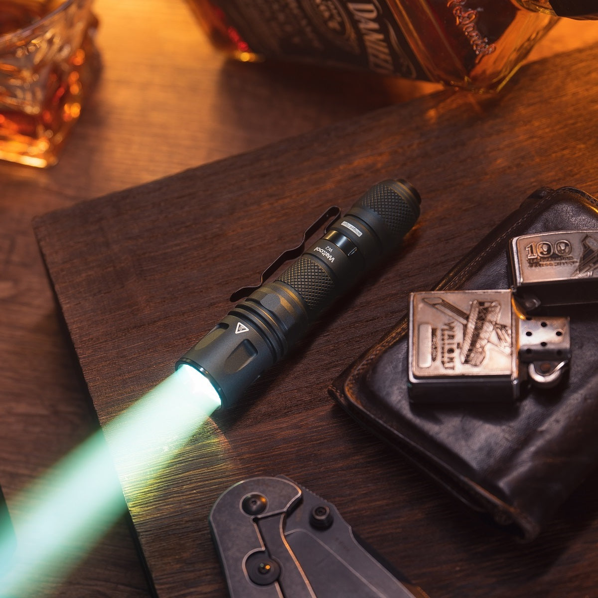 The Weltool W2 is a mini LEP tactical flashlight with a length of only 108mm and a throw of 800 meters. Uses 1 14500 rechargeable lithium-ion battery, 280 lumens, 160,000 candela. W2 uses an optical system that combines SMD LEP light source and optical glass convex lens. It has a narrow beam with spill, which is suitable for lightweight tactical lighting needs. W2 adopts a forward switch, which can turn on when half-pressed, and can also quickly turn on strobe. W2's low-lumen and high-candela beam is conducive to dark adaptation and maintaining situational awareness, and is suitable for law enforcement and other purposes.