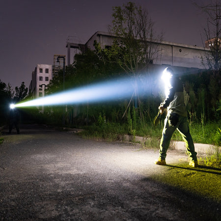 The W3Plus is an ultra-long-range LEP tactical flashlight, with 940 lumens, 810,000 candela, and a throwing distance of 1,800 meters ! Use 1 pcs 21700 rechargeable lithium-ion battery, with overheat protection to ensure the flashlight will not overheat. W3Plus's LEP light source has high energy density, and after being reflected by the optical lens, it forms a dazzling beam of light! The default is high mode when the light is turned on, and the strobe and low are hidden; when the power is off, half-press the switch to instantly become high, or you can quickly and continuously half-press the switch 4 times to turn on the strobe. The beam of W3Plus has a spill at close range, and at the same time has a super long-range throwing ability. Suitable for rescue, tactics, and designed for special lighting.