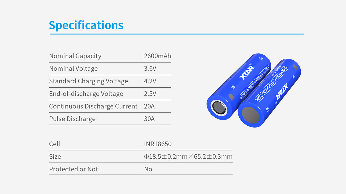 XTAR 18650H INR 2600mAh Li-ion Rechargeable Battery