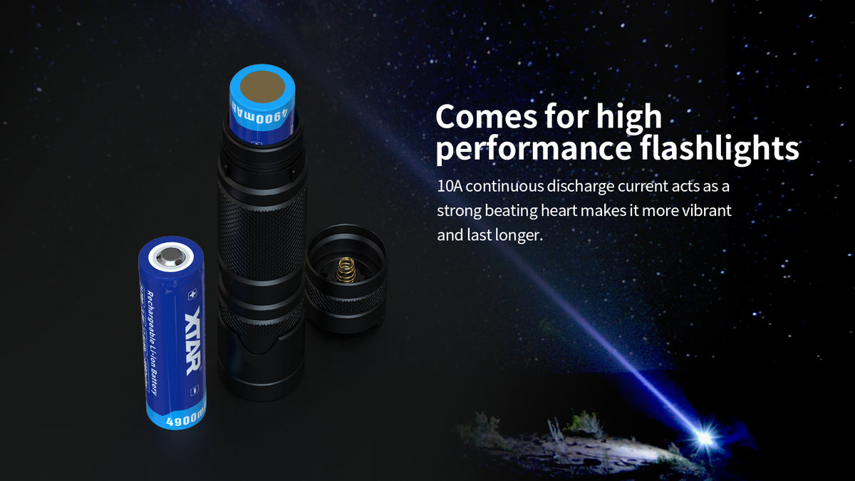 21700 4900mAh rechargeable Li-ion battery, (Button Top) designed for flashlights.