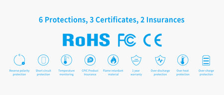 Cut-off voltage: 4.2V +/- 0.05V and 1.45 +/- 0.1V