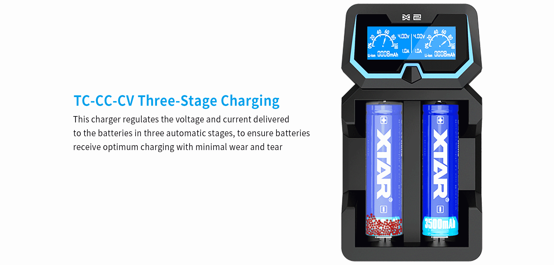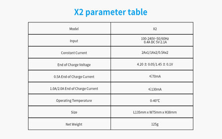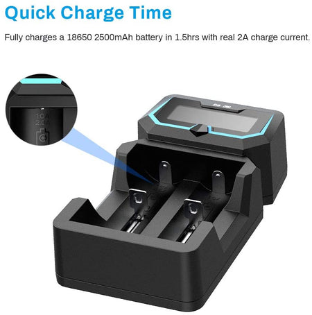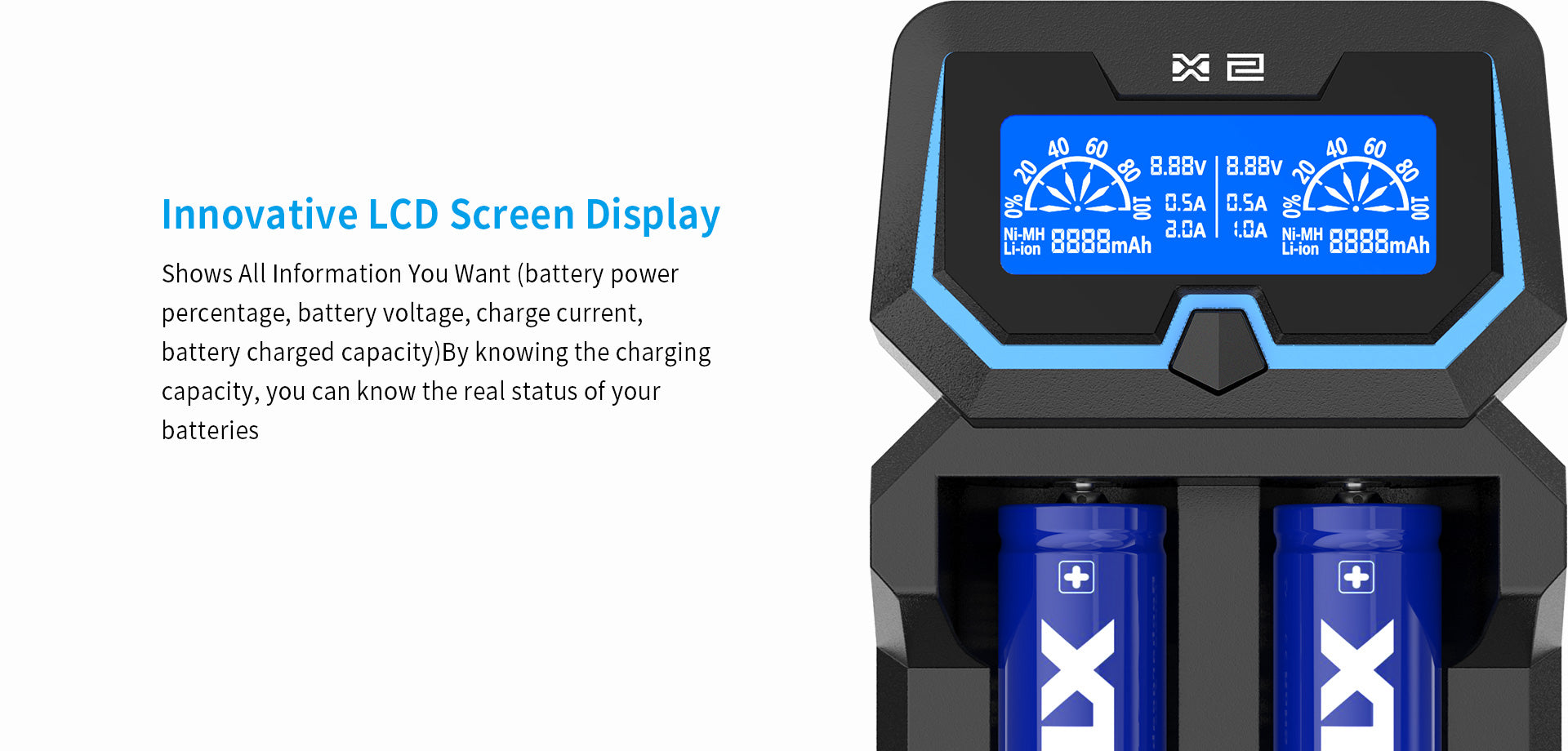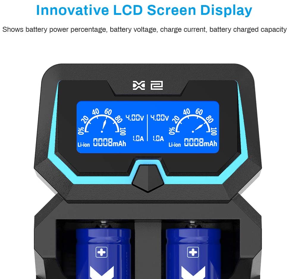 The XTAR X2 is an dual bay smart quick charger designed for all types of Li-ion and Ni-MH batteries. With a max charge rate of 1A for 2 batteries or 2A for a single battery, the X2 is simple to use and fast while maintaining low and cool temperatures.