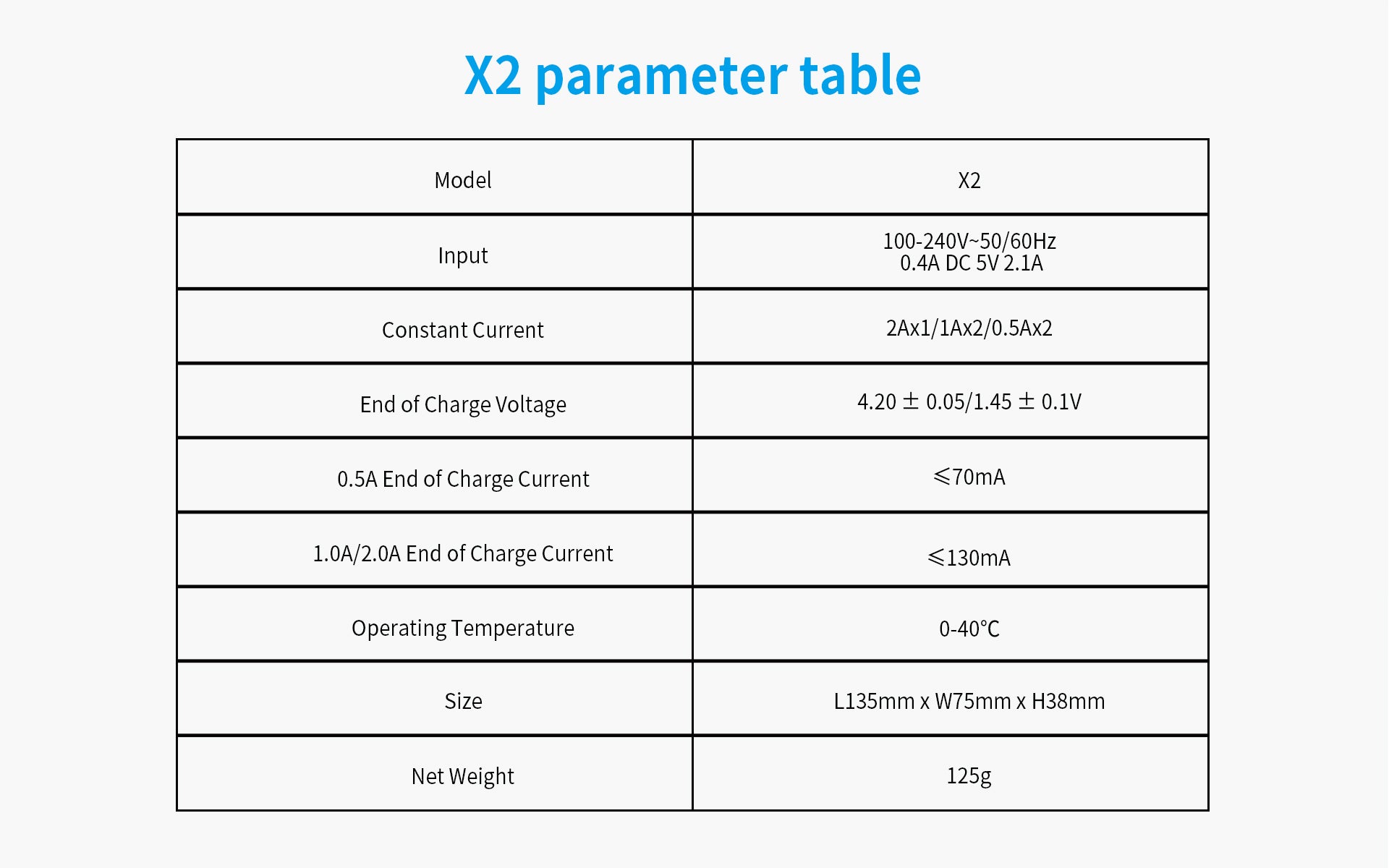 - 0V activation function can rescue your over-discharged batteries. (This feature for advanced users only, charging over-discharged batteries is generally a safety concern)